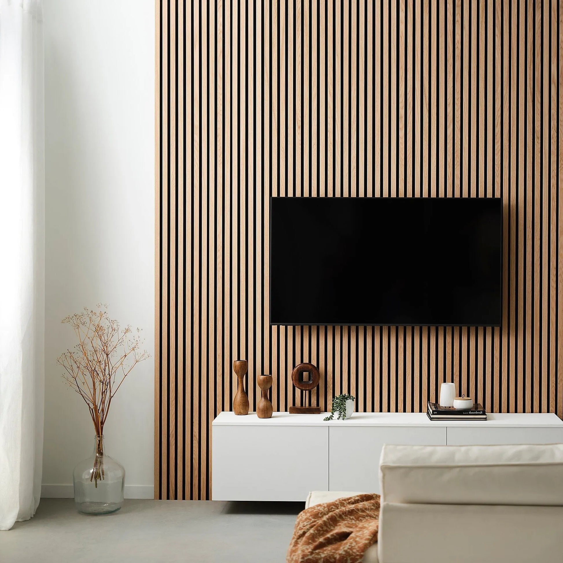 Träribbor på filt är den senaste trenden inom inredning. Dessa långa, lättinstallerade lister ger ditt hem ljushet och värme. De kan användas för att skapa slående lamellväggar och tak, vilket ger rummet ett modernt utseende. Panelerna absorberar ljud och eliminerar efterklang, vilket avsevärt förbättrar rumsakustiken.